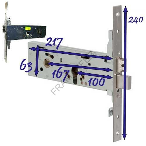 Serratura CISA art. 56357 serratura ad infilare con entrata 100mm. Chiusura triplice ( scrocco e catenaccio + aste). Alloggio per cilindro sagomato (europeo) e predisposizione per montaggio protezione blindata ( simil defender).