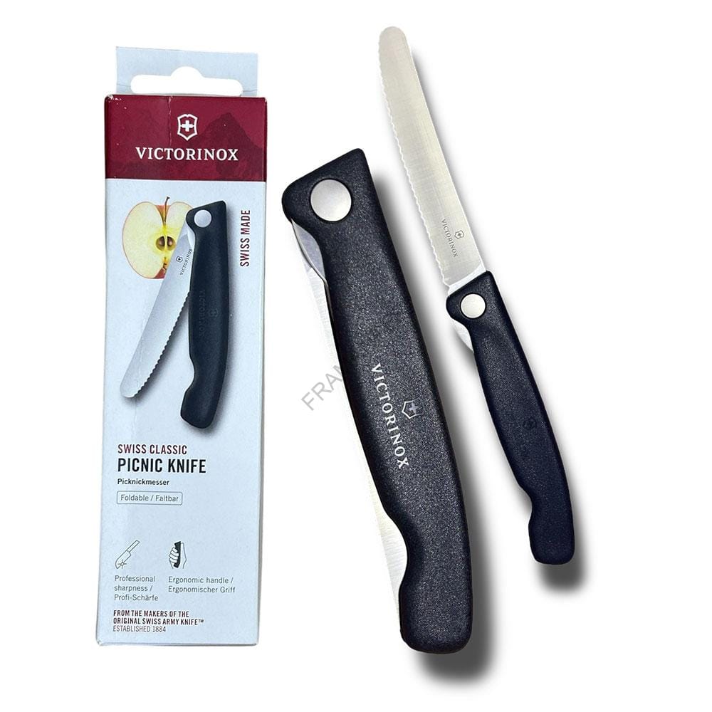 Coltello da picnic / tavola chiudibile della Victorinox, lama dentata per un taglio durevole nel tempo. Prodotto Di altissima qualità svizzera. lavabile in lavastoviglie. Perfetto per Picnic, pesca, scout, escursioni, ecc