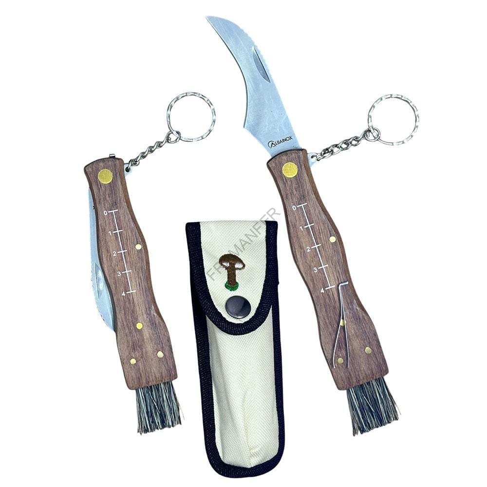 Coltello per funghi 7cm con fodero, pettine, pinza e portachiavi Alba