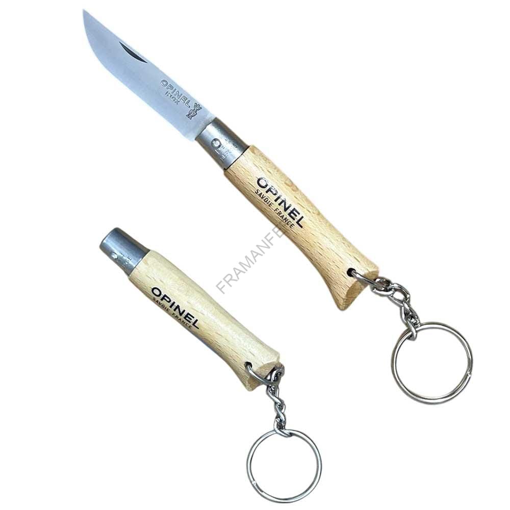 Coltello a serramanico a portachiavi della Opinel N°4 avente lama in acciaio inox e manico in legno di faggio. Possibile personalizzarlo gratuitamente.