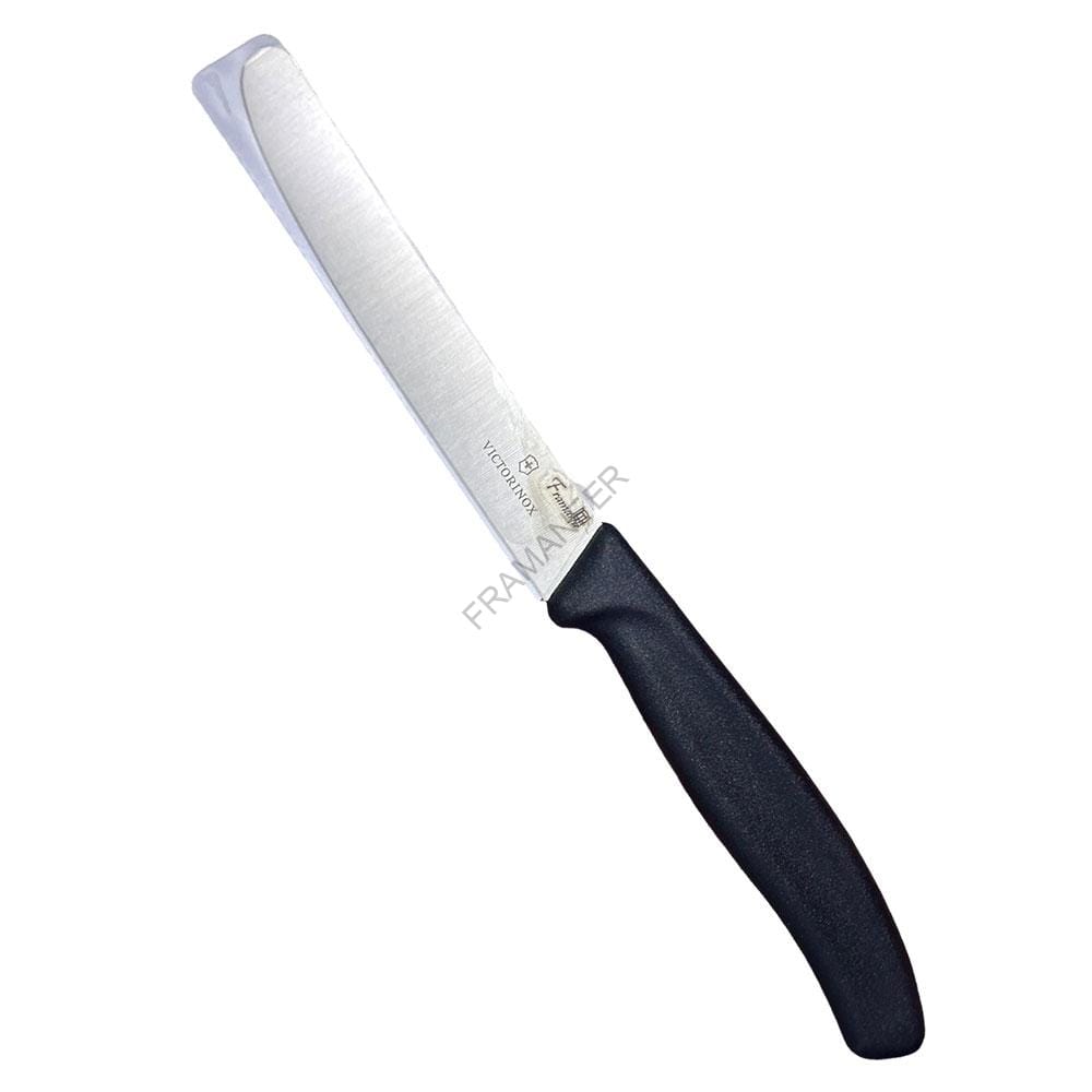 Coltello liscio modello tavola punta tonda da 11cm della Victorinox fornito già affilato dunque va solamente lavato prima di poterlo utilizzare.