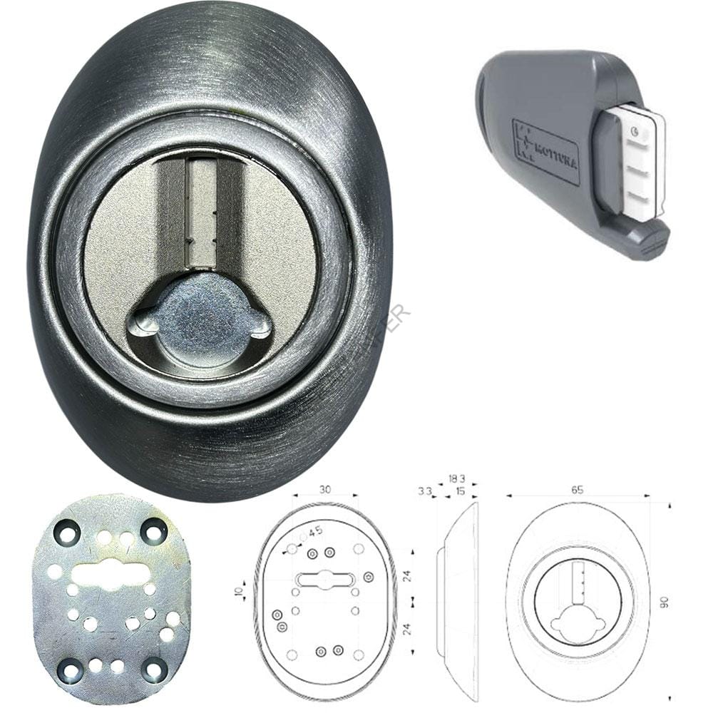È composto da un Defender e da una mostrina in acciaio ad alta resistenza HRC 53 (65 x 90 mm). L’entrata della chiave è protetta dalla speciale copertura rotante che si sblocca solo tramite una chiave magnetica di sicurezza.