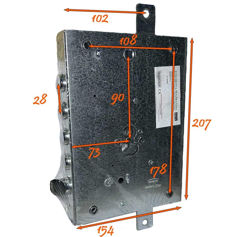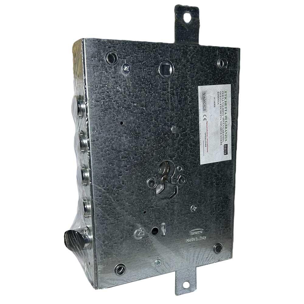 Serratura Dierre Art. NE427 avente 4 catenacci con sporgenza 3mm ed interasse 28mm, entrata 73mm,predisposta per  cilindro europeo sagomato. Con predisposizione da 31mm per ospitare eventuale defender.