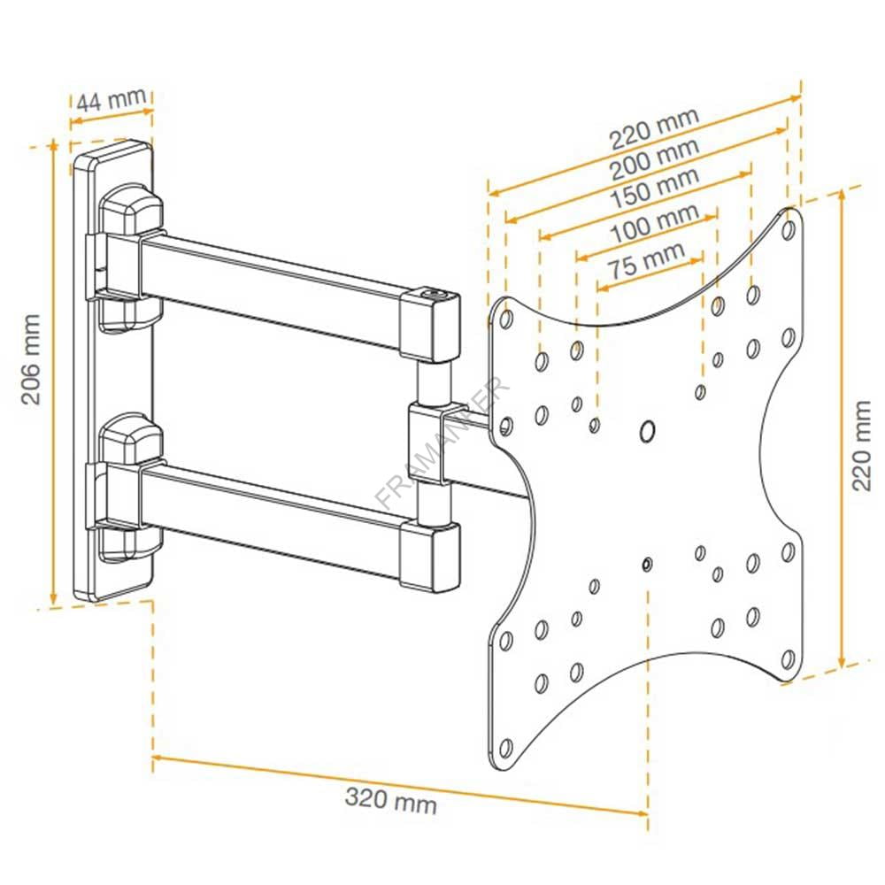 Supporto tv 2 bracci da 28″ a 42″. Installazione a parete con un’aggiuntiva inclinazione di 13° Colore nero e portata massima 20KG. Questo supporto permette di fissare un televisore con diagonale da 71 a 106cm alla parete, liberando