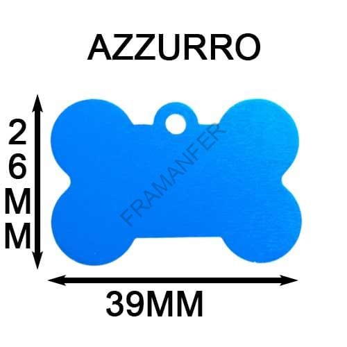 Targhetta per cane in alluminio anodizzato color Azzurro di forma ad “Osso” con asola per anello. Simula il nome del tuo animale domestico direttamente dal form accanto alla foto! Se desideri qualche simbolo come “zampetta” “corona” “quadrifoglio” e tanti altri, contattaci prima di effettuare l’ordine in modo da poter scegliere insieme i simboli da inserire accanto al nome.